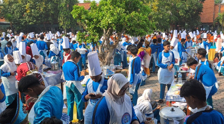 Ribuan siswa SMP Negeri 4 Sidoarjo sangat antusias memasak Nugget Bandeng