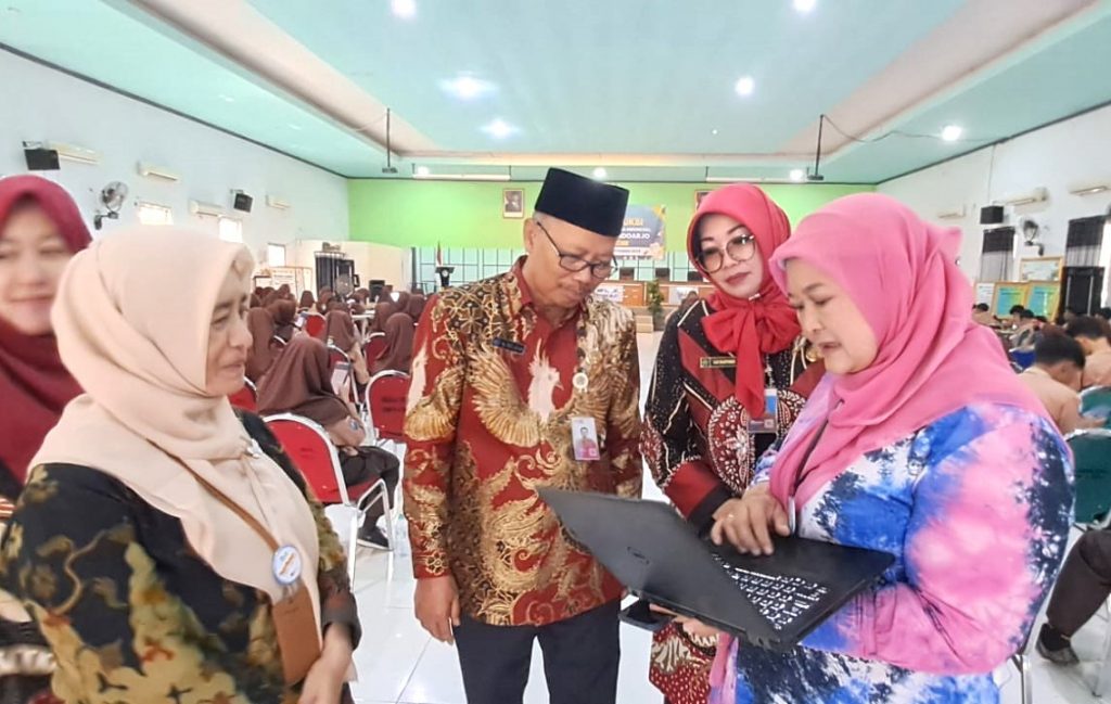 Kepala Dikbud Sidoarjo dan Kepala SMP Negeri 4 Sidoarjo melihat hasil sementara UKBI yang telah selesai