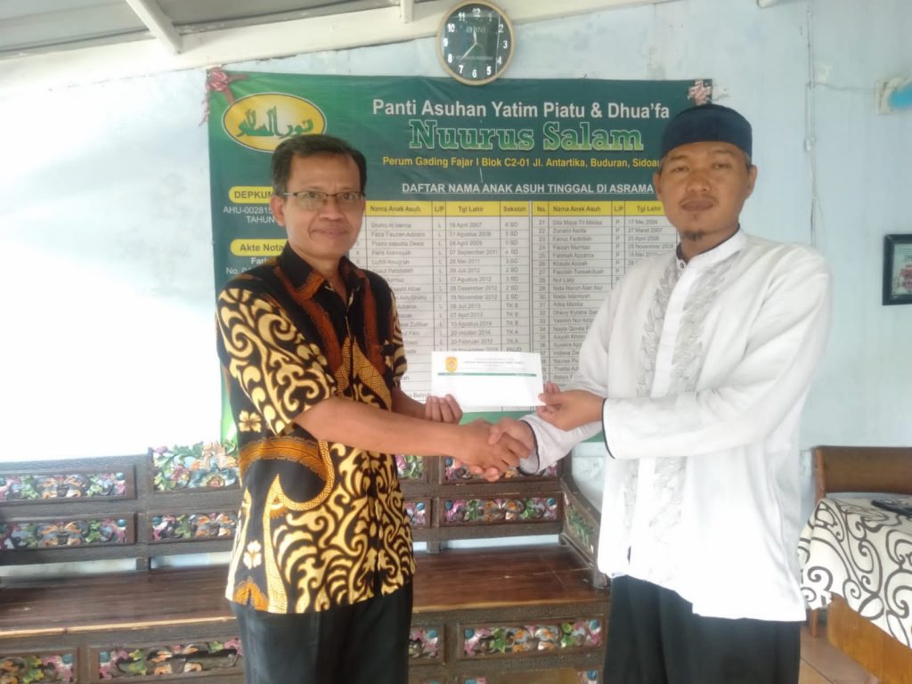 Hal yang sama disampaikan oleh Ustad Sutarno, pengasuh Panti Asuhan Yatim dan Dhuafa Nuurus Salam Siwalanpanji. Pada bulan-bulan di luar Ramadhan, kedua lembaga ini juga menjadi langganan SMP PGRI 1 Buduran sebagai jujugan untuk menyampaikan sodakoh.(mad)