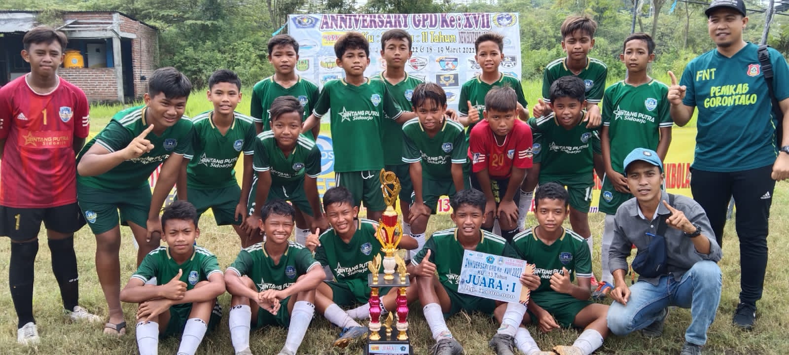SIDOARJO (Radarjatim.id) Sekolah Sepak Bola (SSB) Bintang Putra Sidoarjo U-13 berhasil meraih juara pertama dalam ajang Hari Ulang Tahun (HUT) Gelora Putra Delta (GPD) Sidoarjo Minggu (6/3). Pretasi itu sekaligus mengukuhkan SSB Bintang Putra Sidoarjo sebagai klub SSB di Sidoarjo yang penuh prestasi.