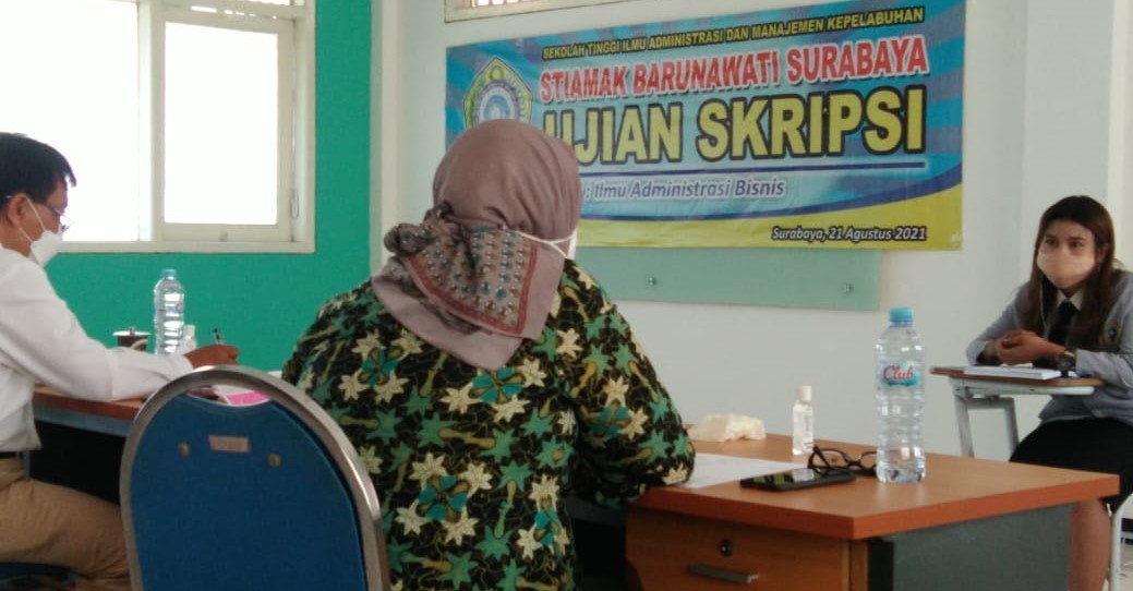 SURABAYA (RadarJatim.id) – Sekolah Tinggi Ilmu Administrasi dan Manajemen Kepelabuhan (STIAMAK) Barunawati Surabaya menguji 83 karya ilmiah berupa skripsi hasil penelitian bidang administrasi bisnis, Sabtu (21/8/2021). Hampir 100 persen mahasiswa penulis skripsi sudah bekerja, khususnya di sektor bisnis pelabuhan di Tanjung Perak.