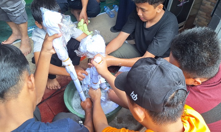 Terakhir, ditutup praktik dalam pembuatan Batik Celup yang dibimbing langsung oleh Pembina Masjid Al Mubarok Anang Wahono.