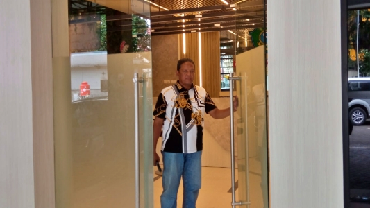 Mansur saat keluar dari Kantor Inspektorat Pemkab Sidoarjo.