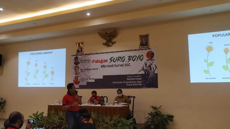 Sebagai informasi, riset ini dilakukan SSC pada tanggal 19-24 November 2020 di 31 Kecamatan di Surabaya. Responden yang digunakan sebanyak 880 orang. Penelitian dilakukan dengan metode stratified multistage random sampling dengan margin of error lebih kurang 3.3 persen dan pada tingkat kepercayaan sebesar 95 persen. (Phaksy)