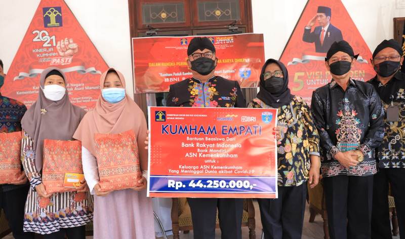 SURABAYA (RadarJatim.id) – Hari Dharma Karya Dhika (HDKD) 2021 dimanfaatkan Kemenkumham untuk berbagi dengan sesama. Salah satunya adalah dengan memberikan tali asih kepada keluarga pegawai yang gugur karena COVID-19.