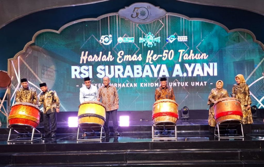 Peringatan Harlah Emas ke-50 RSI Surabaya Ahmad Yani ditandai pemukulan bedug oleh jajaran direksi dan pengurus yayasan.