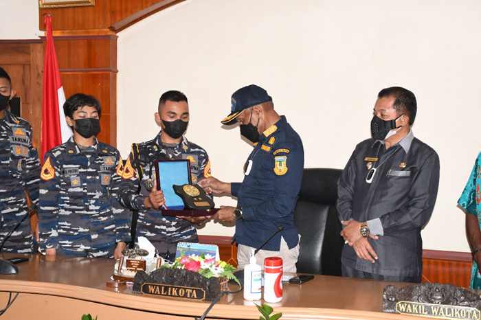 Komandan Satrol Lantamal X Letkol Laut (P) Khalimul Khakim, Komandan KRI Bima Suci sekaligus Dansatgas KJK 2021, Letkol Laut (P) Waluyo, Perwira Pelaksana Latihan Letkol Laut (P) Khairul Anwar dan lima Taruna AAL Tingkat III disambut hangat oleh Walikota Jayapura Dr. Benhur Tomi Mano, Wakil Walikota Jayapura, Ir. H. Rustan Saru, dan Sekda Kota Jayapura Dr. Frans Pikey, di ruang Rapat Walikota Jayapura.