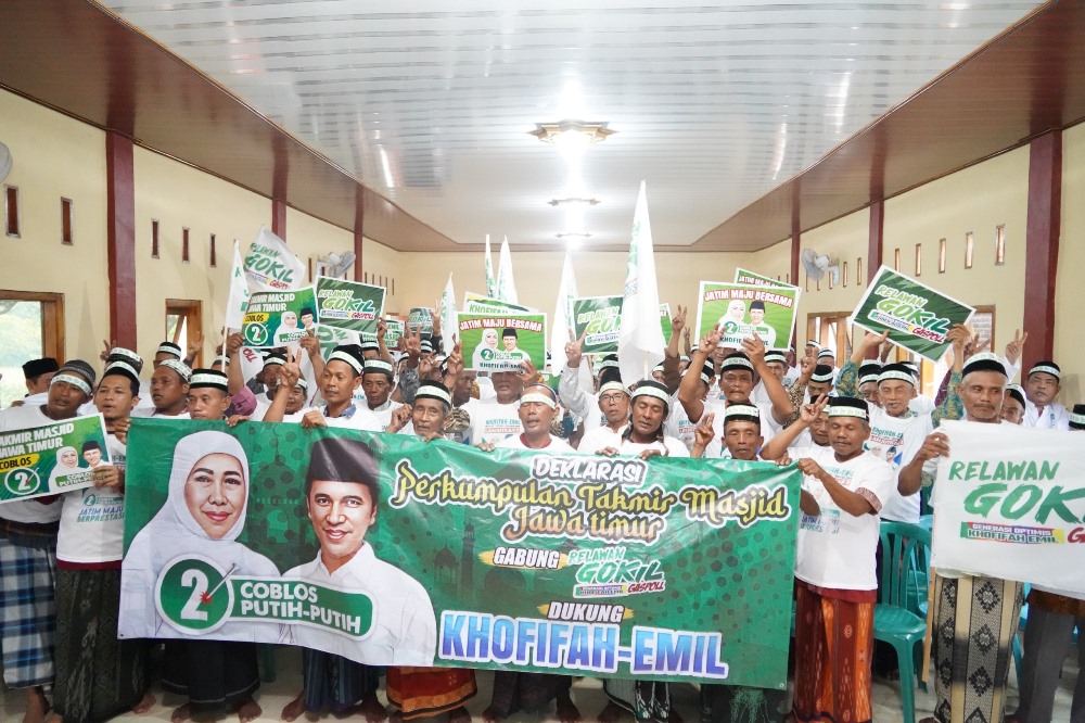 Koordinator Takmir Masjid Jawa Timur Ahmad Rokim mengatakan para relawan tak main-main menargetkan memberikan kemenangan mutlak pada Khofifah-Emil untuk lanjut pimpin periode kedua. Keduanya dinilai layak dipilih lantaran kepemimpinannya sudah terbukti bawa keberhasilan.