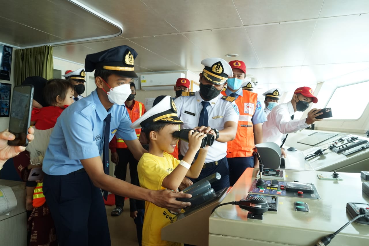 Pada pelayaran Surabaya Tanjung Perak ke pelabuhan Lembar Lombok NTB, Kamis (20/1/2022) sedikitnya 7 penumpang anak-anak bersama para orang tua diajak berkeliling disejumlah ruangan kapal KM Kirana VII.