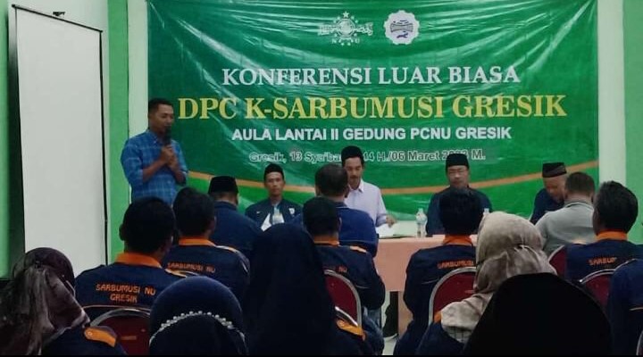 GRESIK (RadarJatim.id) — Pengurus Sarikat Buruh Muslimin Indonesia (Sarbumusi) Cabang Gresik menggelar Konferensi Luar Biasa (KLB) di Gedung PCNU Gresik, Jalan Dr Wahidin Sudirohusodo, Gresik, Senin (6/3/2023).  Dalam forum tersebut, secara aklamasi para pengurus memberikan tongkat estafet kepemimpinan kepada M. Bahrul Ghofar untuk memimpin organisasi buruh bentukan Nahdlatul Ulama (NU) dalam upaya memberikan perlindungan kepada kaum buruh.