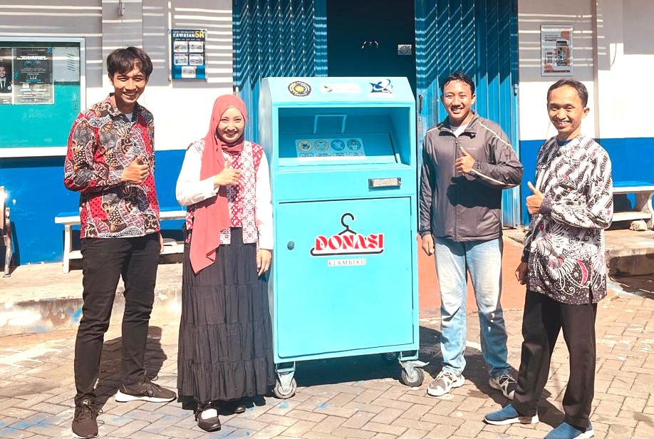 Sementara itu, baju bekas yang masih layak pakai dikumpulkan ke dalam kotak donasi KLAMBIKU, yaitu kotak berbasis IoT yang terhubung dengan situs web. “Kotak tersebut dilengkapi sensor untuk mendeteksi kapasitasnya. Saat kotak penuh, indikator layar akan menampilkan tulisan “PENUH”. Informasi kapasitas kotak “KOSONG”, “TERISI”, dan “PENUH” ditampilkan secara real-time di laman web yang terhubung,” jelas Ketua PKM Umsida Metatia Intan Maulina.