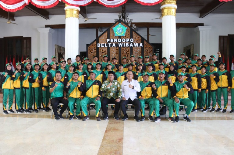 SIDOARJO (RadarJatim.id) — Sekitar 50 orang pemain sepak bola putra dan putri yang akan berlaga pada Porprov Jatim VIII 2023, meminta doa restu Bupati Sidoarjo H. Ahmad Muhdlor S.IP. Mereka tim sepak bola datang ke Pendopo Delta Wibawa didampingi Ketua Askab PSSI Sidoarjo Budi Basuki, Rabu, (30/8/2023) siang.