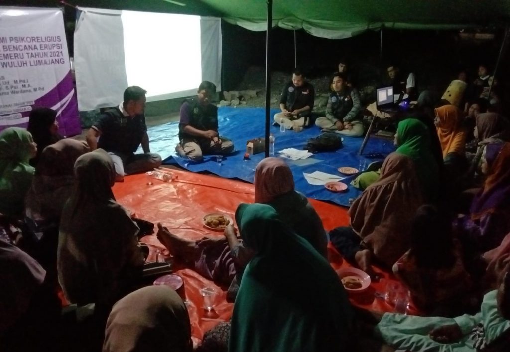 Hal tersebut, sebagai upaya mengatasi dampak yang ditimbulkan bencana erupsi Gunung Semeru tahun 2021. Seperti trauma, stress akibat dampak bencana, prikoreligi adalah upaya penanggulangan dampak bencana berpendekatan agama, melalui dzikir, sholat dan penyuluhan hakikat diri sebagai hamba Allah. “Dengan psikoreligi ini membuat bathin seseorang menjadi tenang,” ungkap Muhlasin Amrullah, S.Ud M.Pd.I selaku penanggungjawab kegiatan, pada (13/4/2022) tadi pagi.