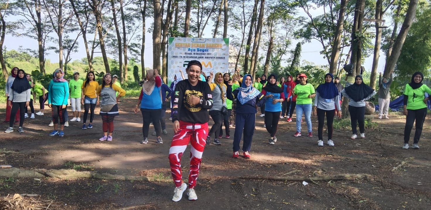 SIDOARJO (RadarJatim.id) Hampir setiap hari Minggu pagi, puluhan ibu-ibu atau remaja putri menggelar olahraga senam aerobik disebelah barat eks tol atau di Desa Besuki, Kecamatan Jabon, Minggu (18/12/2022).