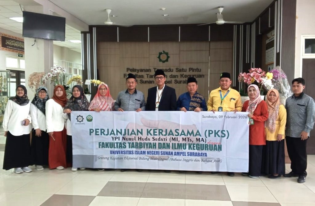 SIDOARJO (RadarJatim.id) – Upaya meningkatkan kompetensi siswanya, serta meningkatkan mutu siswa atas penilaian eksternal di Bidang Multilingual (Bahasa Inggris dan Bahasa Arab) YPI (Yayasan Pendidikan Islam) Nurul Huda Sedati, telah melakukan PKS (Perjanjian Kerja Sama) dengan Universitas Negeri Sunan Ampel Surabaya, pada (9/2/2026) siang.