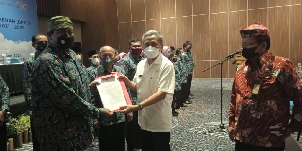 Penyerahahan SK Pengukuhan Sekda Sidoarjo kepada Ketua BPPD Sidoarjo disaksikan Kepala Disporapar Sidoarjo