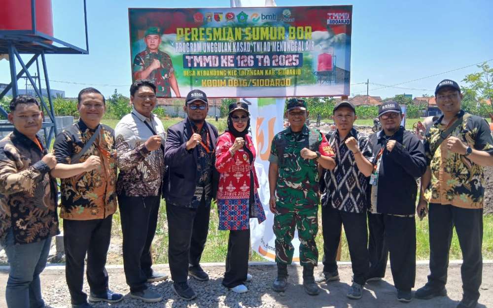 SIDOARJO (RadarJatim.id) Sumur bor program Lembaga Amil Zakat Nasional (Laznas) Baitul Maal Hidayatullah (BMH) Unit Sidoarjo pemanfaatnya diresmikan di rangkaian kegiartan TNI Manungggal Membangun Desa (TMMD) ke-126. Sumur bor bantuan dari para donator Laznas BMH ini terletakk di Desa Kedondong, Kecamatan Tulangan, Kabupaten Sidoarjo.