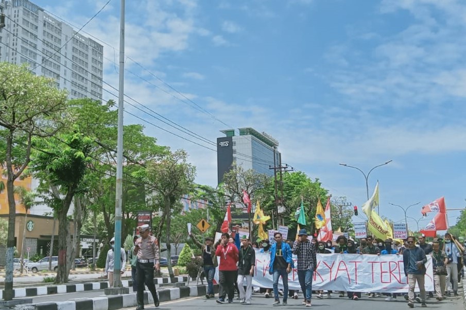 Dalam aksinya, mereka mengusung 7 tuntutan, yakni tolak kenaikan harga BBM, turunkan harga bahan pokok, jamin hak-hak kerja buruh, dan tolak PHK massal. Selanjutnya, mereka juga menolak RKUHP, maksimalkan penyaluran BBM bersubsidi yang tepat sasaran, dan wujudkan reformasi agraria untuk membangun industri nasional yang berdaulat dan mandiri.