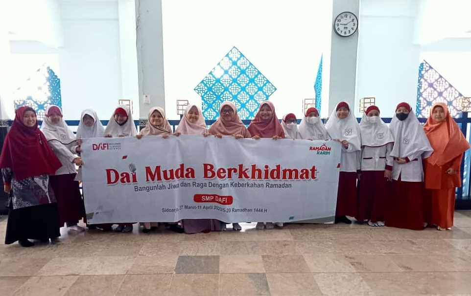 SIDOARJO (Radarjatim.id) – Bulan Suci Ramadan 1444 H dimanfaat sebaik-baiknya oleh para santri SMP Dafi (Darul Fikri) Pesantren Al Quran Science Sidoarjo, yakni dengan melakukan road show, keliling untuk berdakwah di lingkungan masyarakat. Mulai di masjid-masjid, TPQ (Taman Pendidikan Al Quran) dan sekolah-sekolah dasar, untuk mewujudkan Da’i Muda Berkhidmat.