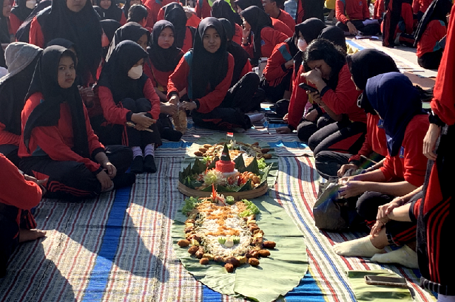 SIDOARJO (RadarJatim.id) — Selain melestarikan seni budaya tradisional bangsa Indonesia, Tumpeng sebagai simbul keakraban dan kebersamaan juga sebagai wujud rasa syukur kepada yang Maha Kuasa. Oleh sebab itu, dalam merayakan HUT RI ke 79 SMA Negeri 2 Sidoarjo menggelar lomba Merias Tumpeng secara Kolosal.