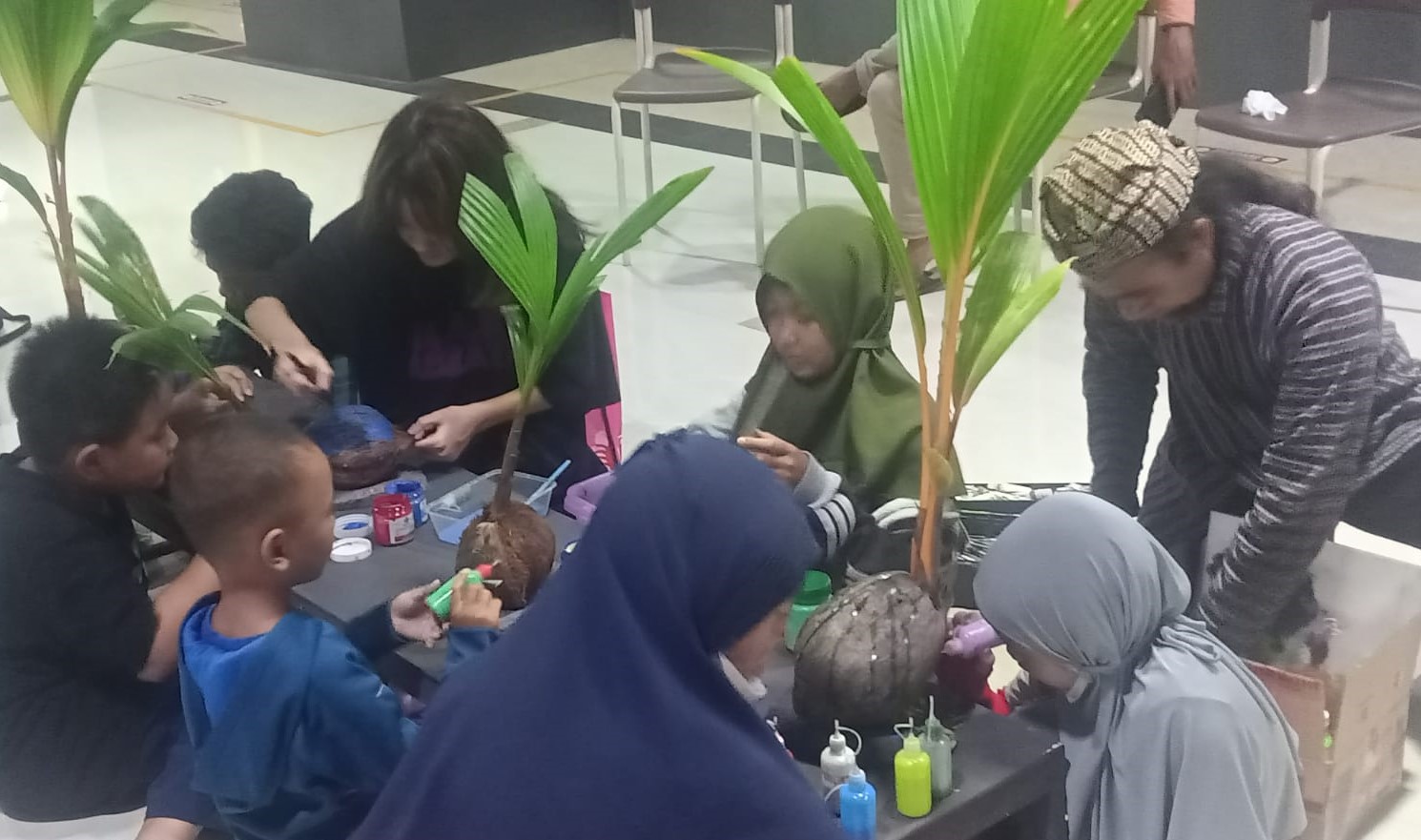 GRESIK (RadarJatim.id) – Sanggar Daun yang concern dengan dunia seni lukis bagi anak-anak tak pernah berhenti dalam berkreasi. Di sela pameran tunggal 3 pelukis cilik binaannya di Icon mall Gresik, sanggar yang dinakhodai Arik S. Wartono ini menggelar pameran dan demo melukis dengan media sangat unik dan kreatif, yakni tunas kelapa.