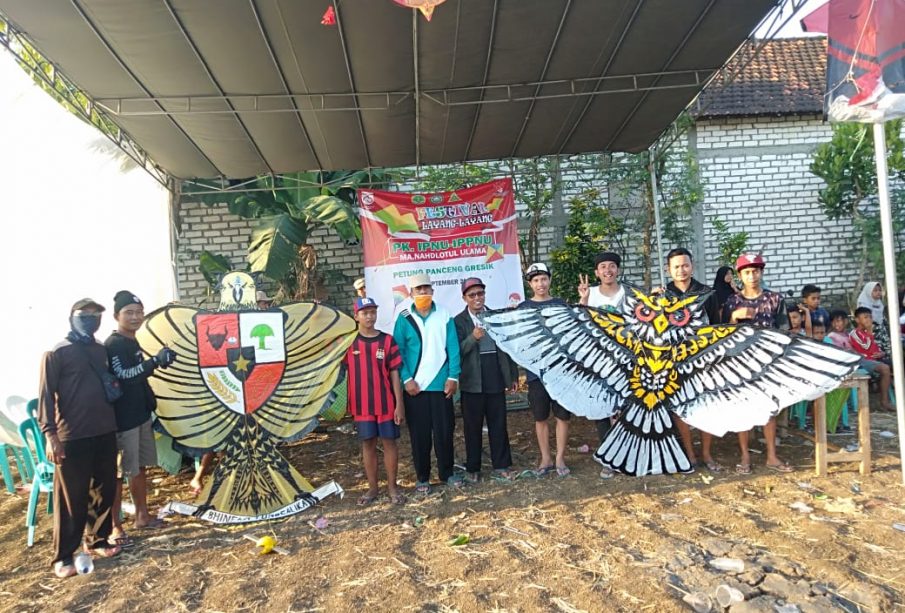 GRESIK (radarjatim.id) – IPNU dan IPPNU Komisariat Madrasah Aliyah (MA) Nahdlatul Ulama (NU) Petung, Kec. Panceng, Gresik, menggelar festival layang-layang sewilayah Gresik, Bangkalan, Mojokerto, Surabaya, Sidoarjo, dan Lamongan (Gerbangkertosusila). Festival sebagai ajang unjuk kreativitas ini dihelat di area sekitar sekolah di desa itu, Minggu (6/9/2020), sebagai rangkaian peringatan HUT ke-75 Kemerdekaan RI.