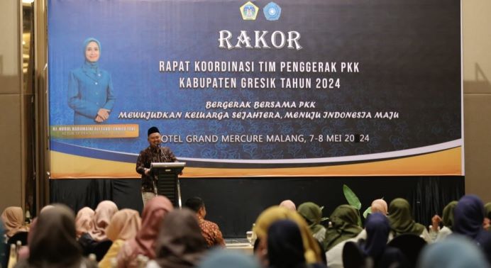 RakorTim Penggerak PKK Kabupaten Gresik tahun 2024 berlangsung selama dua hari, 7-8 Mei 2024 di Hotel Grand Mercure Malang. Selain dihadiri orang nomor satu dan dua di Pemerintah Kabupaten Gresik, kegiatan ini dihadiri juga oleh Ketua Tim Penggerak PKK Kabupaten Gresik Nurul Haromaini, Kepala Dinas Pemberdayaan Masyarakat dan Desa Abu Hassan, Camat se-Kabupaten Gresik, serta jajaran pengurus penggerak PKK se-kecamatan di Kabupaten Gresik. (sto)