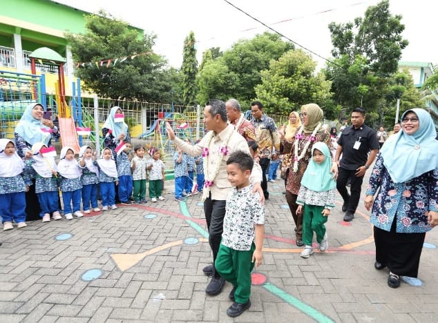 SIDOARJO (RadarJatim.id) — Wakil Menteri Pendidikan Dasar dan Menengah, Dr. Fajar Riza Ul Haq, M.A., M.Si. didampingi oleh Direktur PAUD Kemendikdasmen Dr. Nia Nurhasanah, S.Si., M.Pd. dan Kepala BBPMP Jatim yaitu Dr. Praptono, M.Ed. melakukan kunjungan ke KB-TK Al Muslim, Sidoarjo, pada (11/2/2025) pagi.