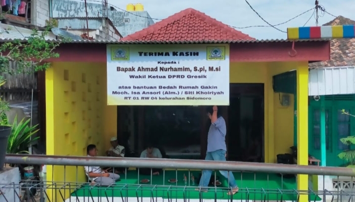 Program yang berlangsung di rumah yang dibedah itu diserahterimakan secara simbolis dari Wakil Ketua DPRD Gresik Ahmad Nurhamim yang memfasilitasi aksi sosial itu kepada penerima manfaat, Siti Khoiriyah.