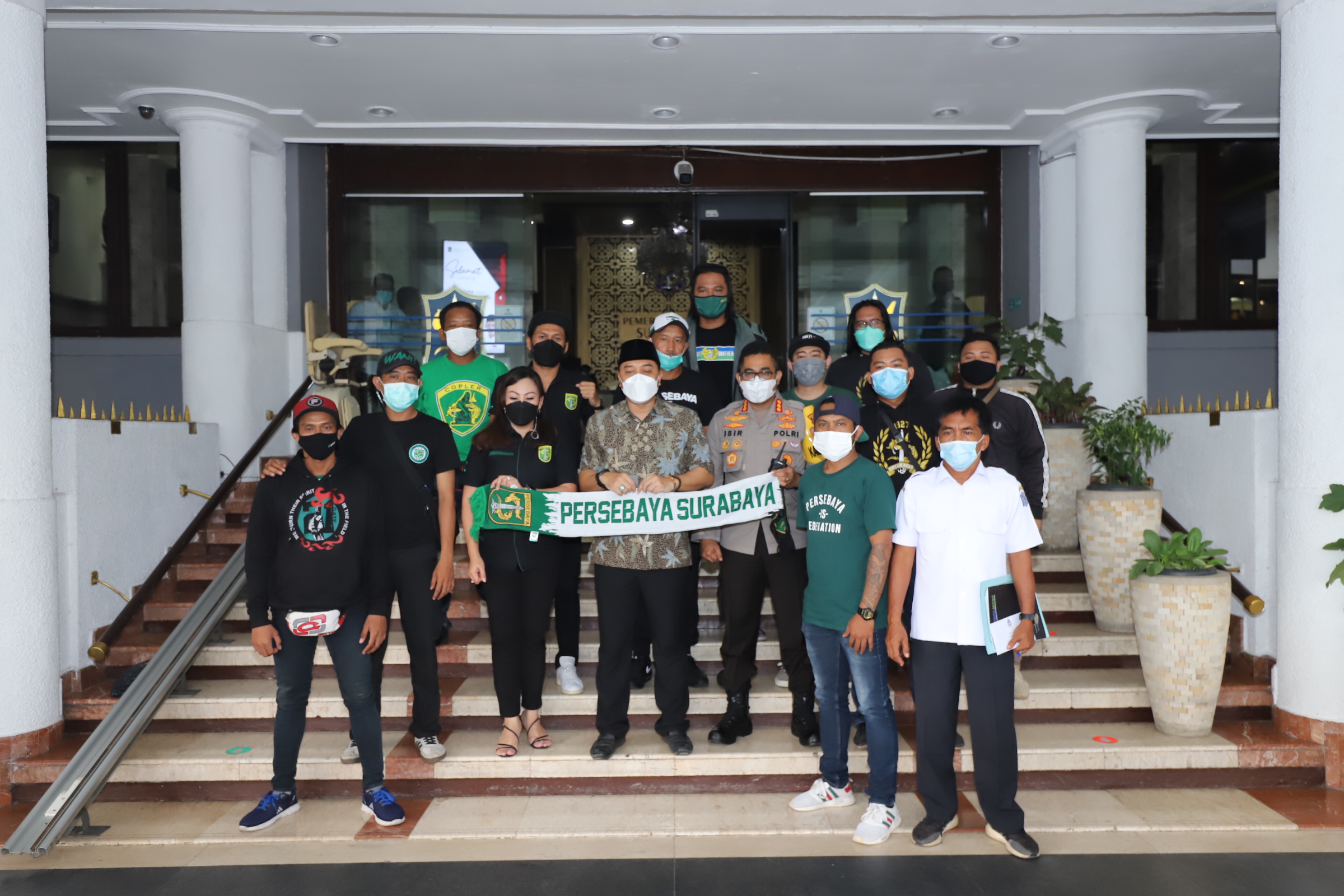 SURABAYA (RadarJatim.id) – Walikota Surabaya, Eri Cahyadi menggelar audiensi bersama manajemen Persebaya beserta perwakilan dari suporter atau yang akrab disapa Bonek, Rabu (24/3/2021). Kedua belah pihak akhirnya menemui kesepakatan dan menyamakan persepsi bersama terkait pemanfaatan Stadion Gelora 10 Nopember (G10N) dan Gelora Bung Tomo (GBT).