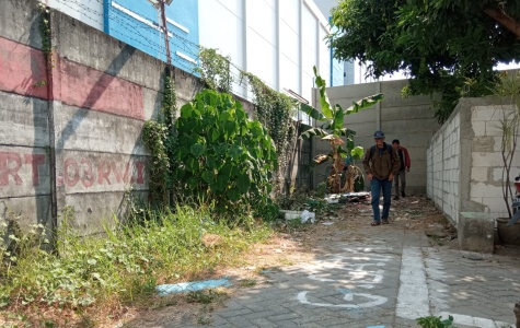 Disisi barat pun tembok serupa juga telah berdiri kokoh menutup akses jalan dari arah barat ke arah timur yang berdiri tinggi diatas sempadan sungai dan disisi saluran air.