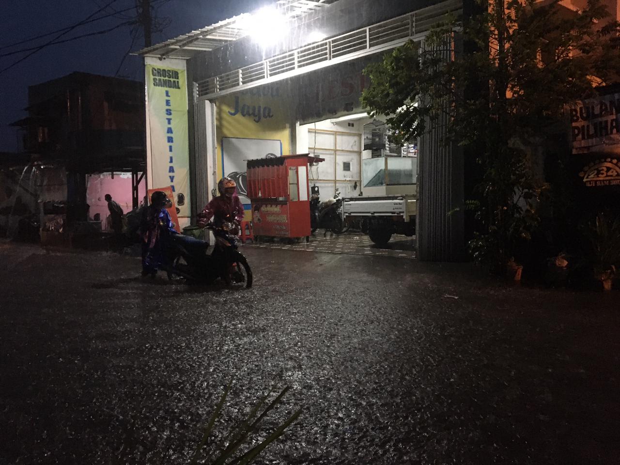 Jaya selaku pemilik Toko Lestari sandal grosir mengatakan, sangat prihatin dengan adanya saluran yang tidak bisa menampung air hujan pada sore hari ini. “Akibatnya toko saya juga ikut terdampak,” katanya.
