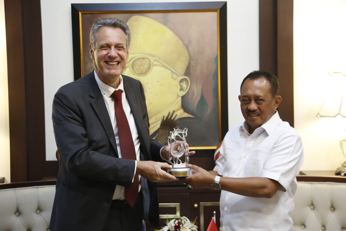Dirinya juga menyebutkan bahwa Kota Surabaya sejak dipimpin oleh Tri Rismaharini menjalin hubungan baik dengan Perancis melalui kerjasama dengan kota Marseille yang memiliki karakter yang sama sebagai kota pelabuhan dan berpenduduk terbesar kedua setelah Perancis.